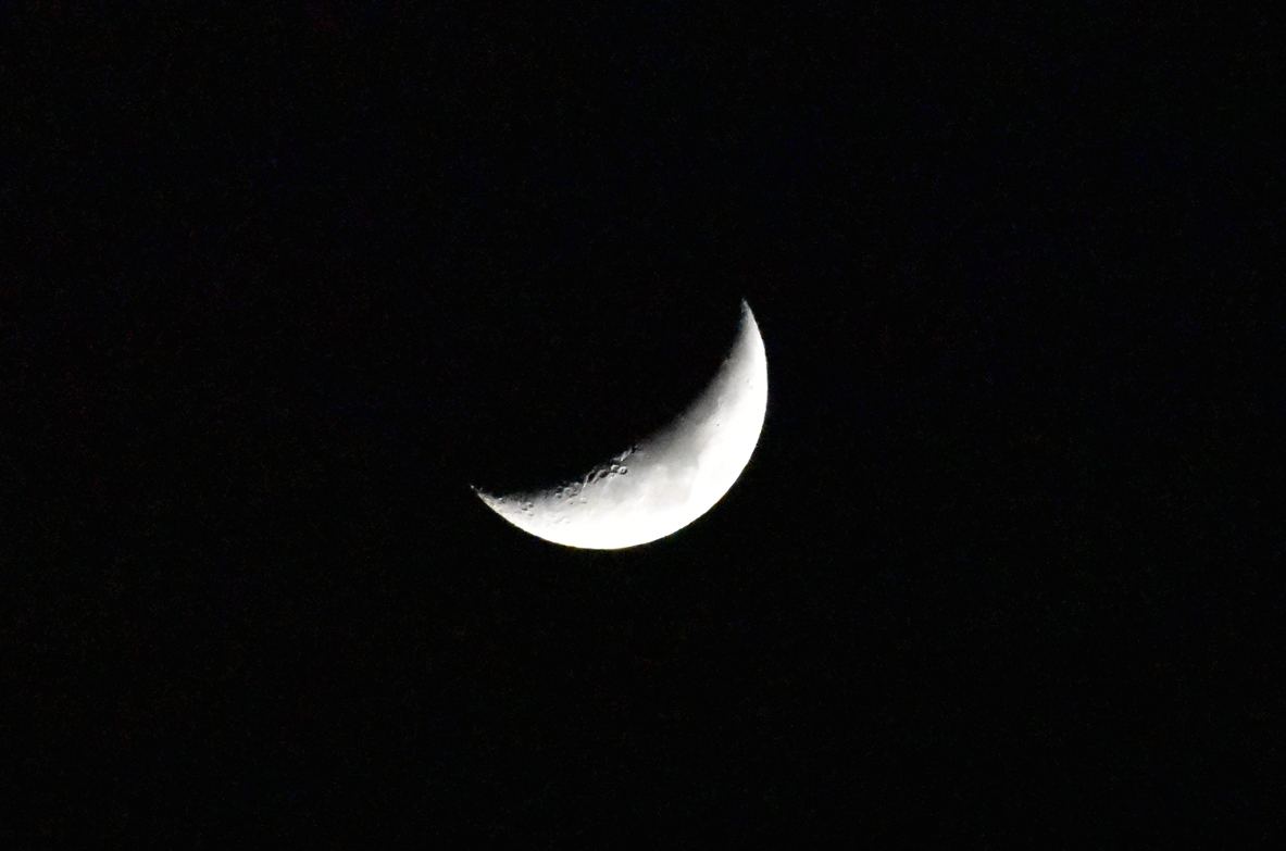Nikon D5600と300mm望遠レンズで、月を撮って見ました。 細い三日月で、なかなかピントが合ってるか…