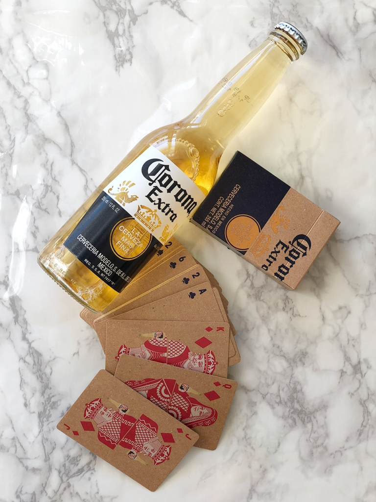 コロナビールを飲んでいるジャック、クイーン、キング。